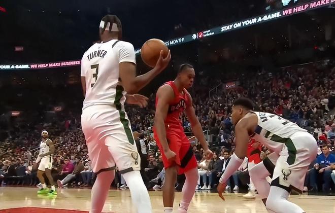 第三节扬尼斯又一次转身被巴恩斯直接摁掉,巴恩斯这场比赛是紧贴扬尼斯,在大帽后他还示意争球,巴恩斯就是想要挑衅字母哥。